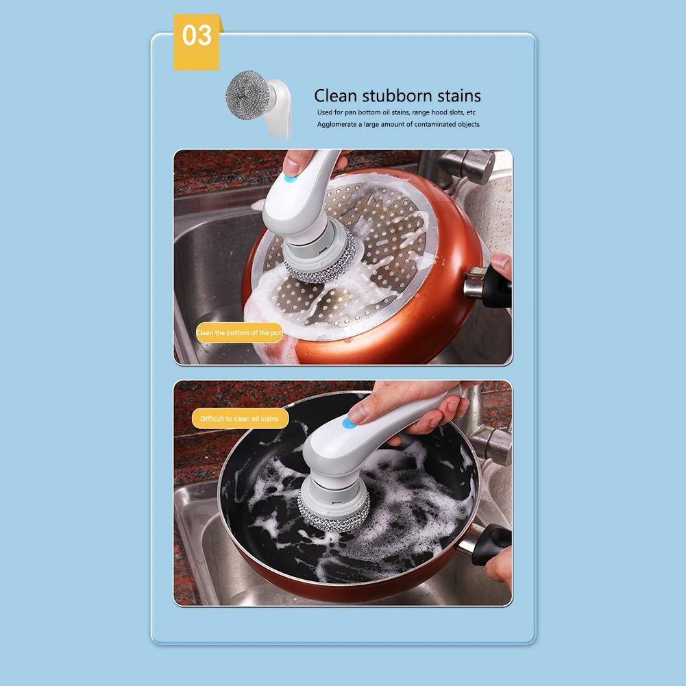 4. Suitable for Kitchen and Household: This electric brush cleaner is perfect for cleaning kitchen appliances, living rooms, bathrooms, floors, tiles, furniture, grease buildup, stovetops, pans, cars, and other areas. It can effectively assist you in completing various cleaning tasks.